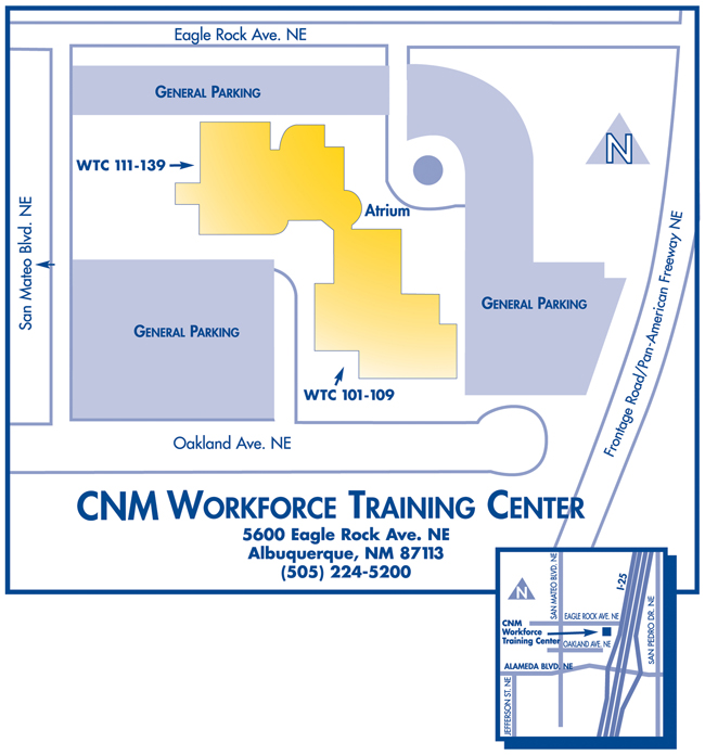 The WTC is located northwest of the I-25 and Alameda intersection. The construction at Paseo Del Norte has not yet begun to cause chaos, so you should be able to drive right through that intersection (albeit slowly) to get to Alameda (if heading north on I-25). Once at Alameda, head west to San Mateo, turn right and right again at the WTC sign. (I know it looks on the map as if San Mateo ends at Oakland, but it does not.)